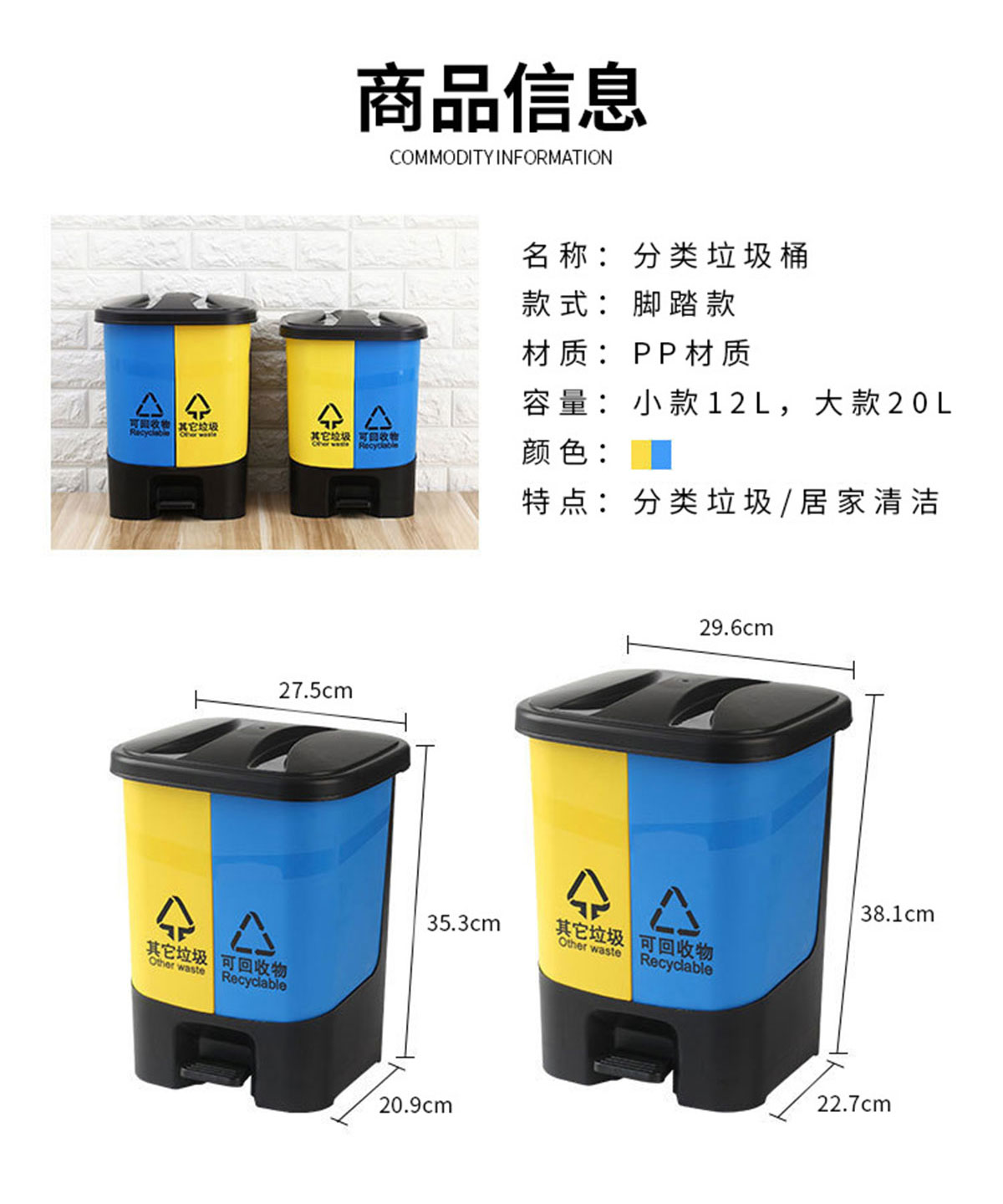 環(huán)保分類垃圾桶12L/16L