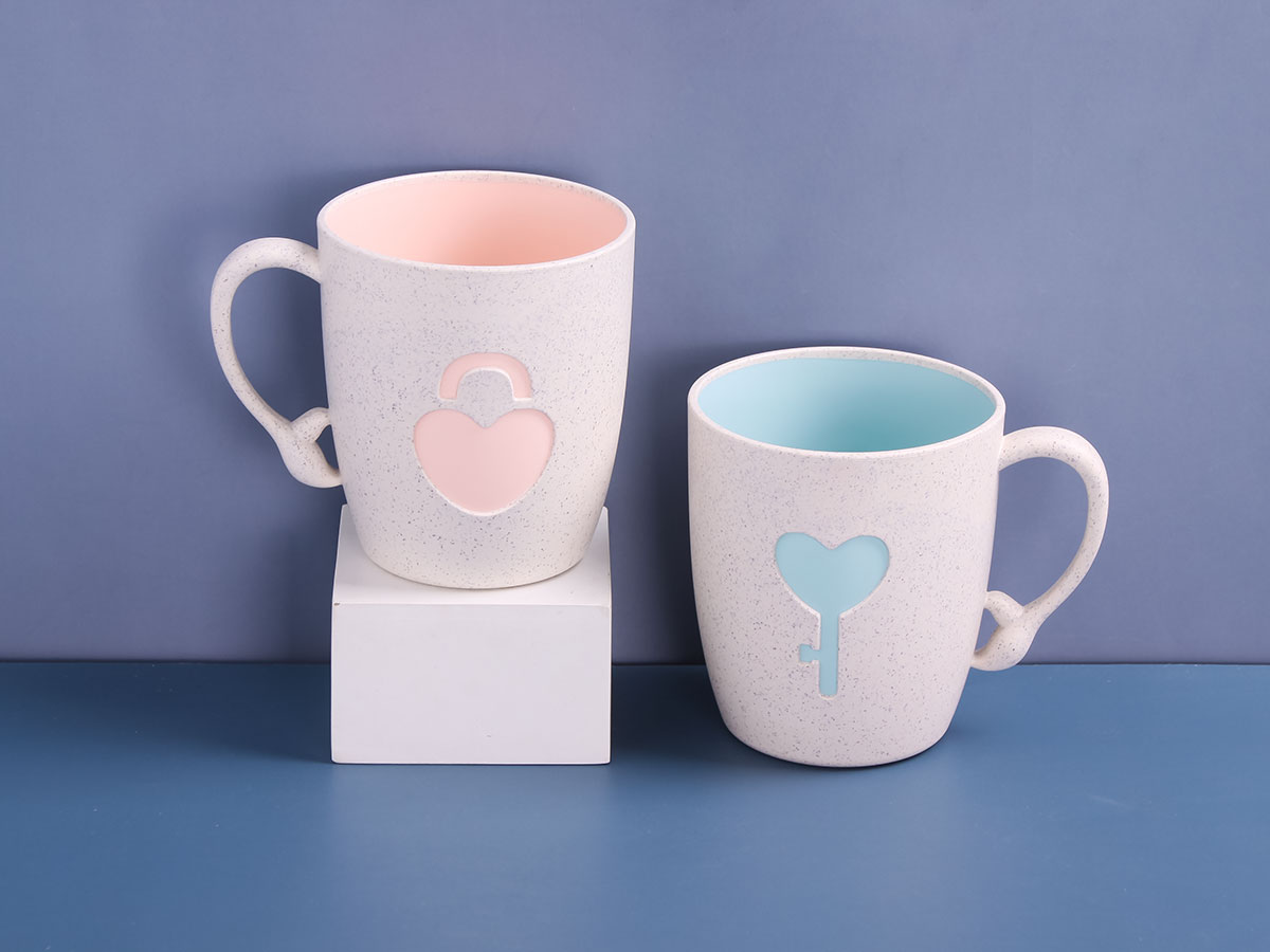 麥稈鎖心對杯(480ml):彩盒215*100*28mm/單個(gè)產(chǎn)品120*88(上口徑)*105mm