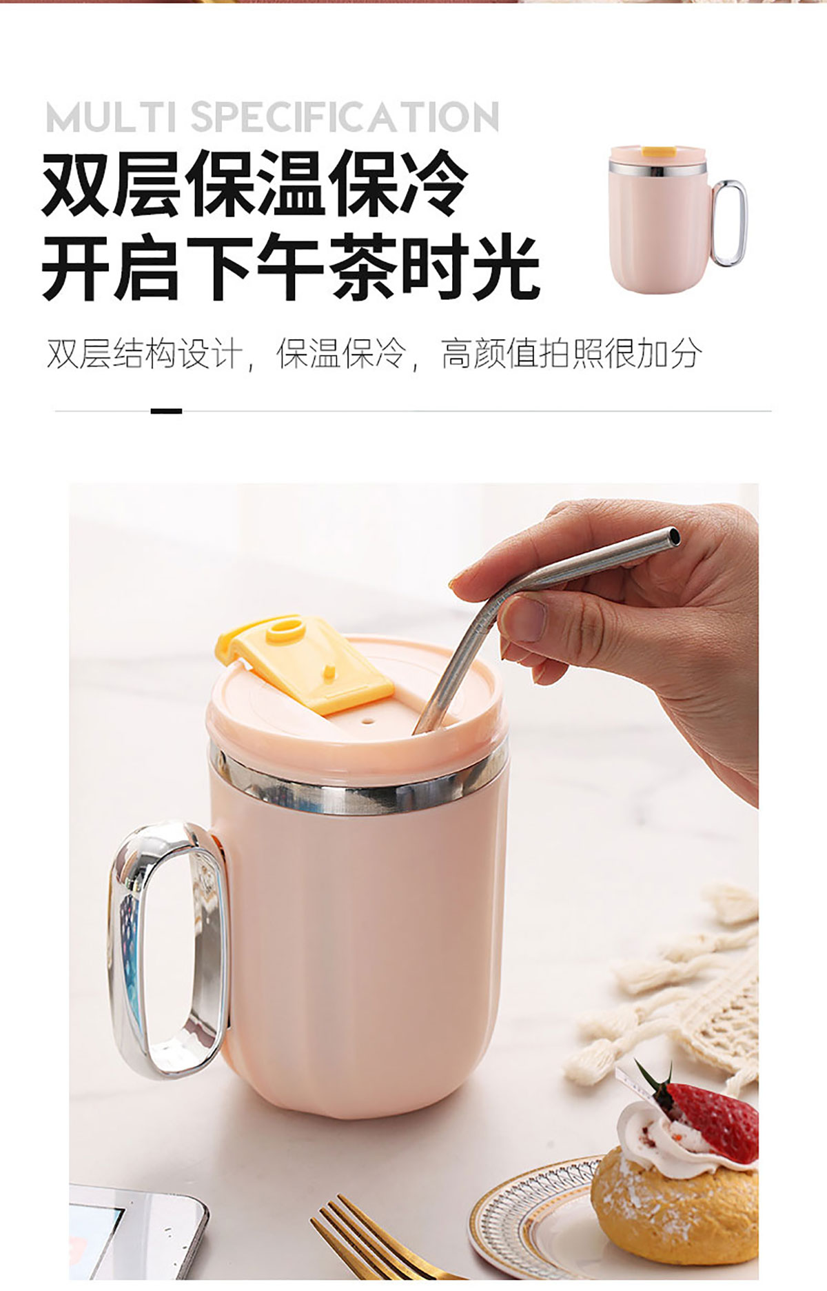 Stuff:304不銹鋼內膽+PP+TPE+鍍銀手柄/彩盒