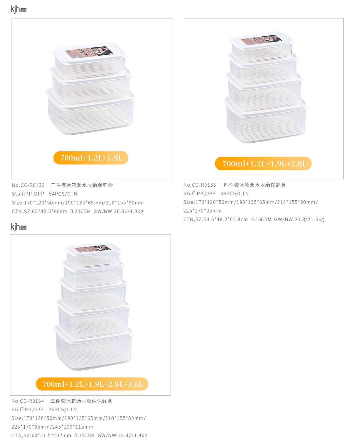 三件/四件/五件套冰箱瀝水收納保鮮盒