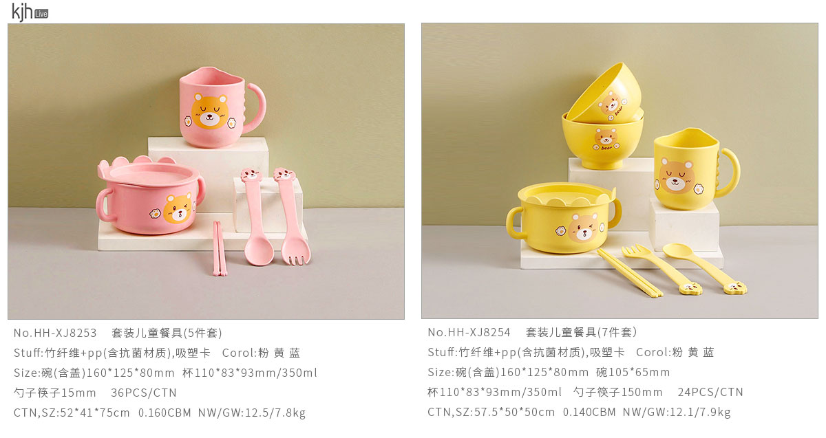 HH-XJ8253:碗(含蓋)160*125*80mm/杯110*83*93mm 350ml/勺子筷子15mm