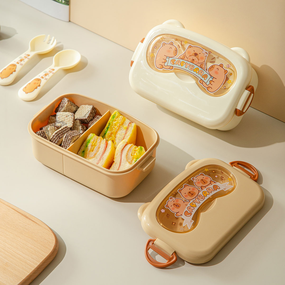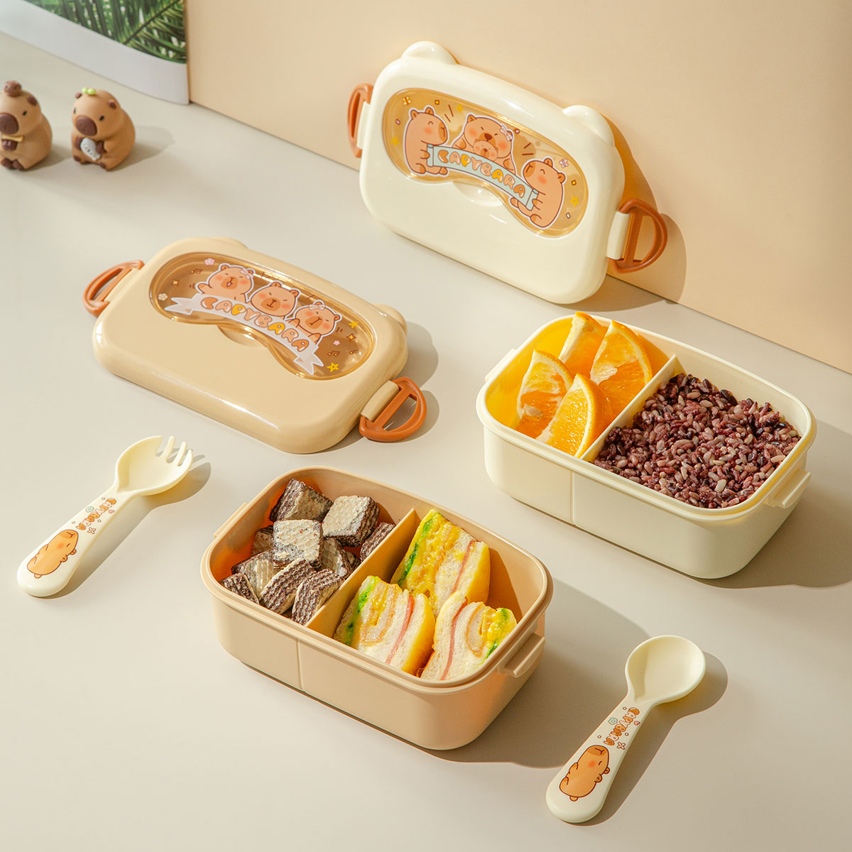 魔法豚長(cháng)方形/萌鏡豚/趣照豚分格便當盒