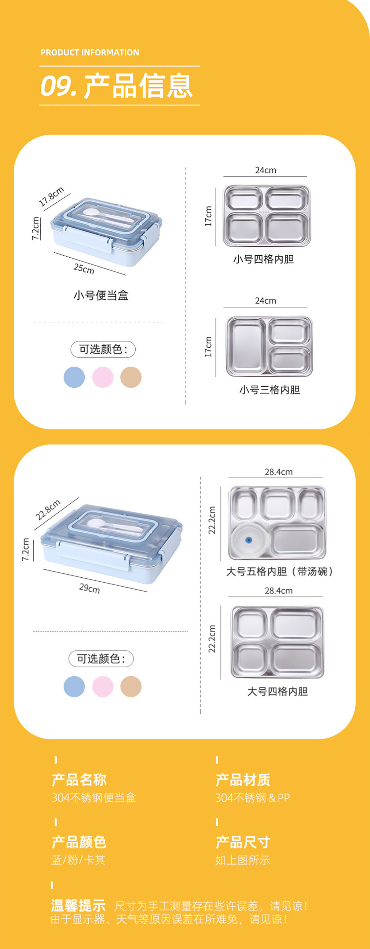 便捷式不銹鋼飯盒 小號(三格/四格)大號(四格/五格)