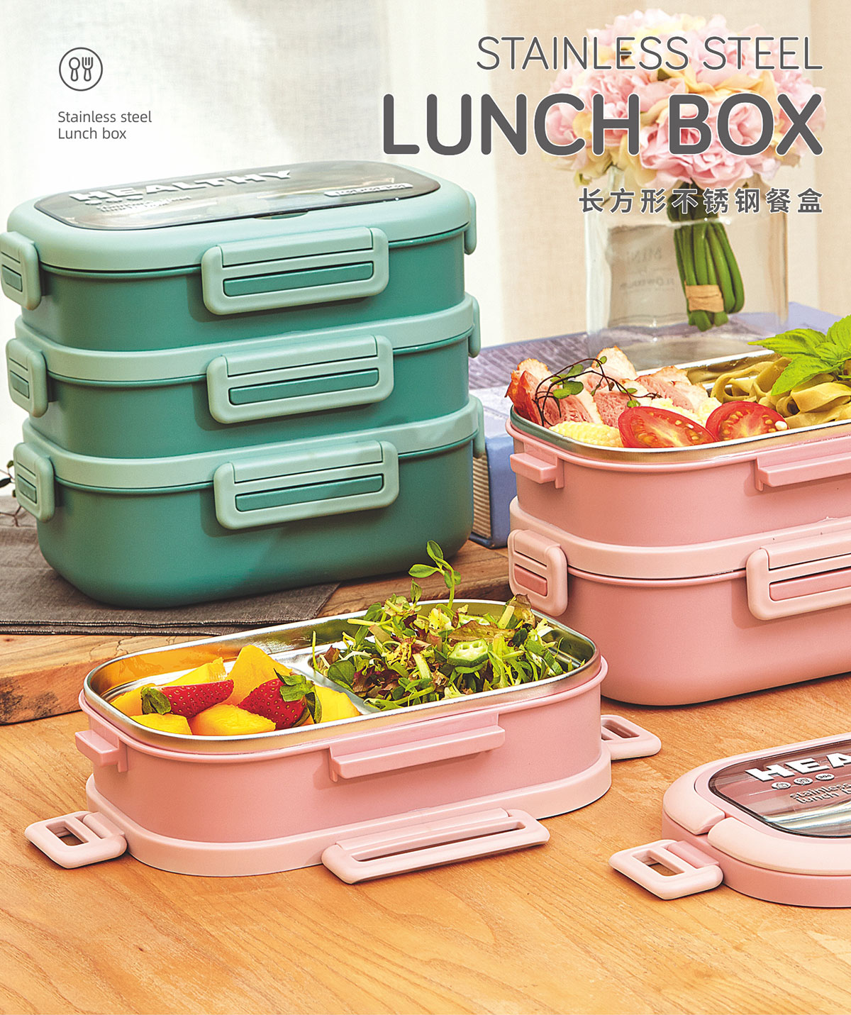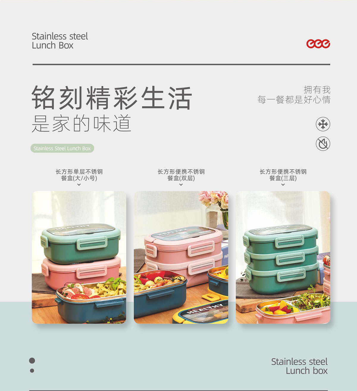 長(cháng)方形單層(小號/大號)便捷(雙層/三層)不銹鋼餐盒