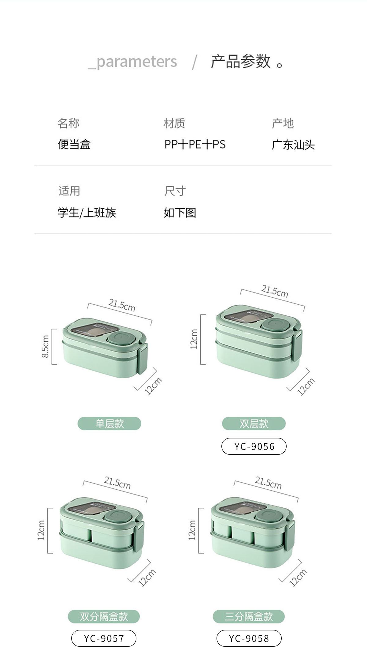 Size: YC-9056(雙層):215*120*120mm/1550ml