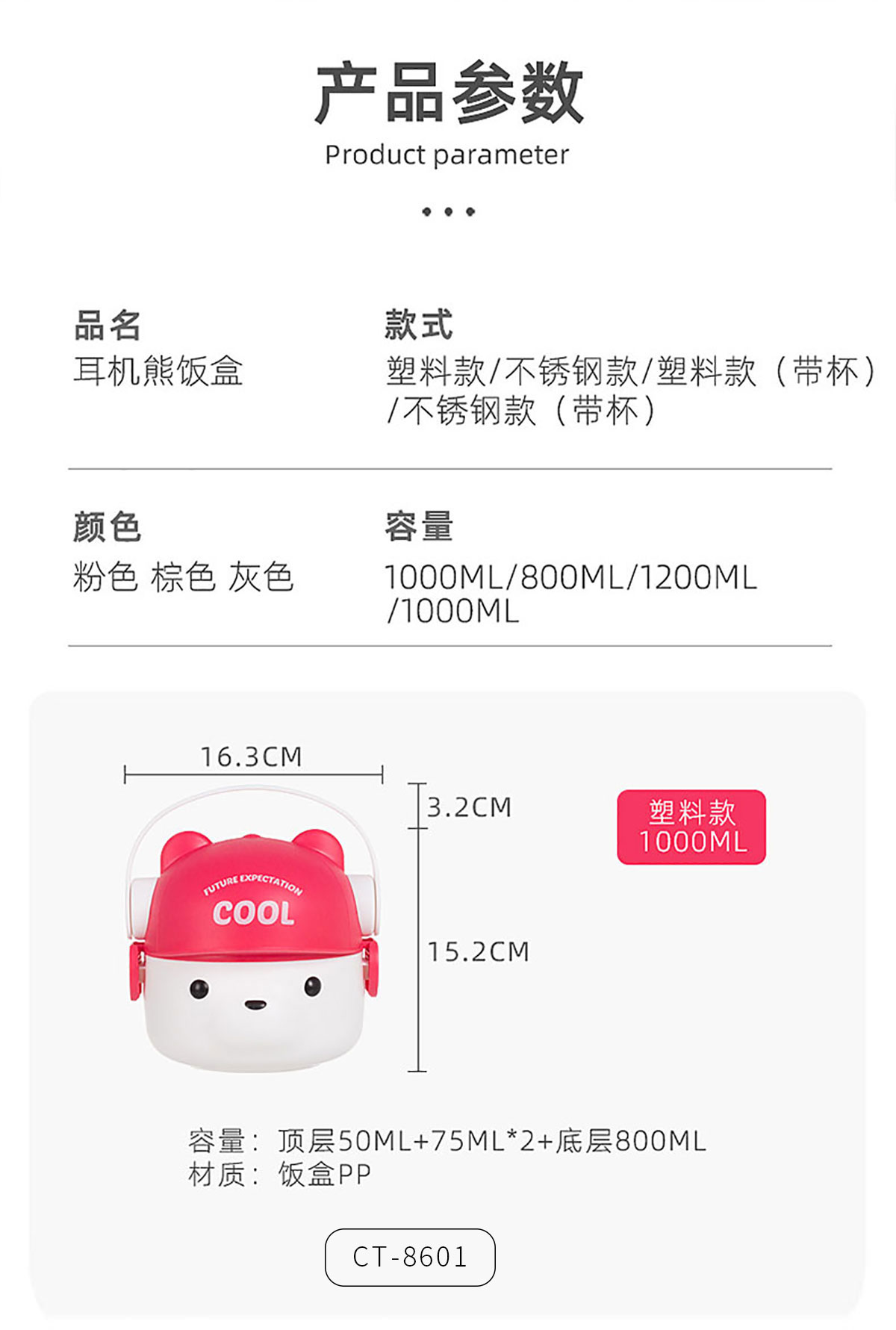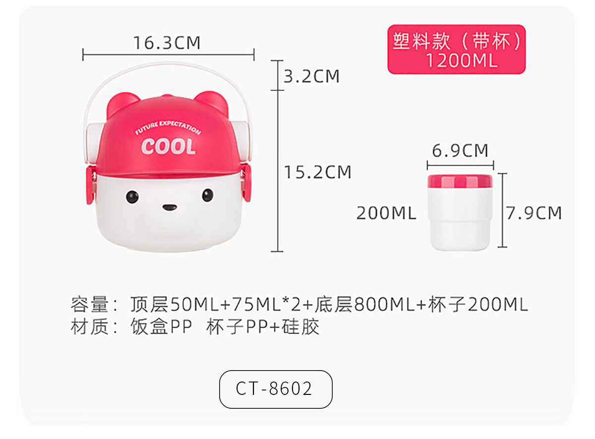 CT-8602(塑料款套裝):160*155*150mm/1000ml 69*79mm/200ml