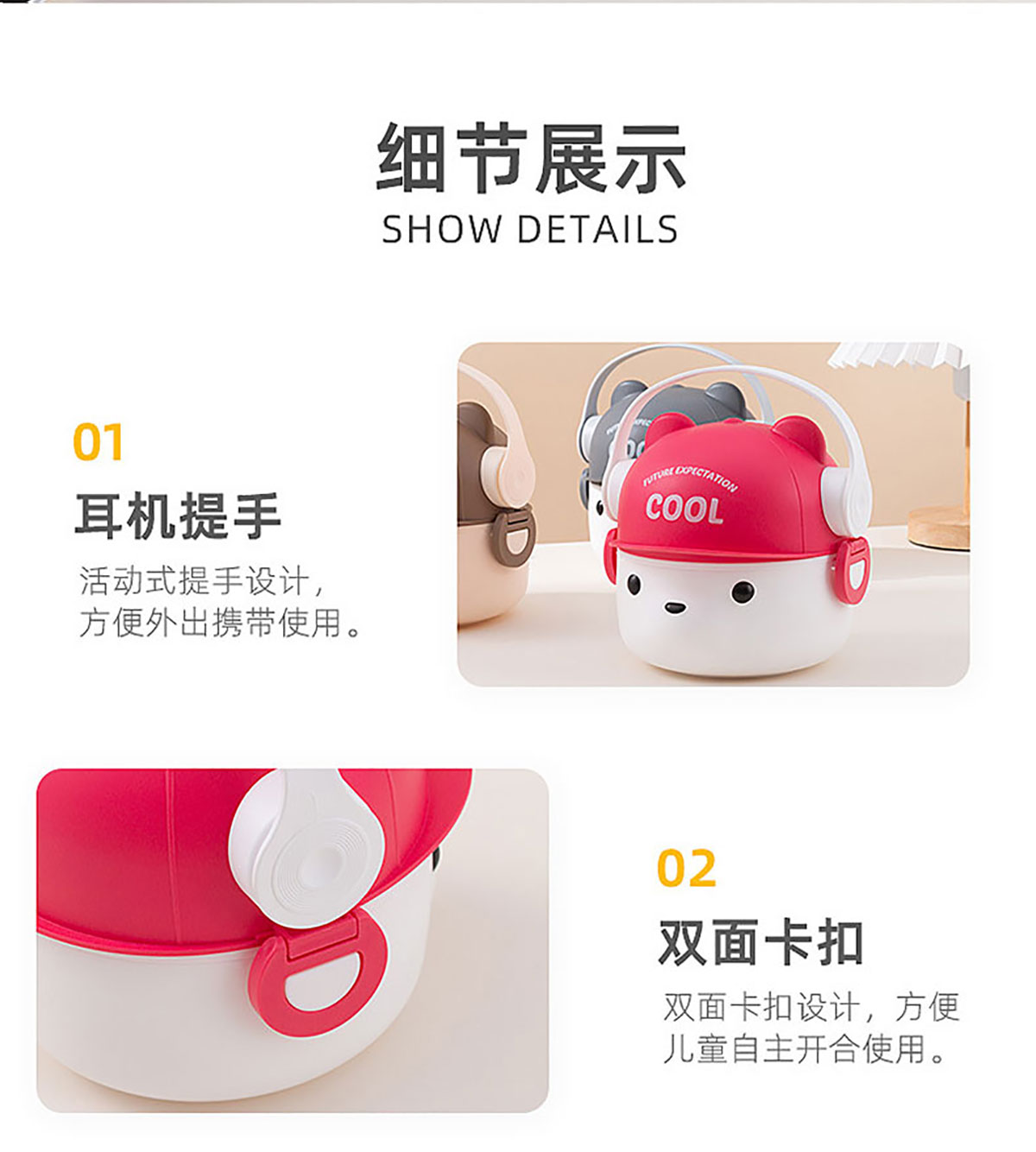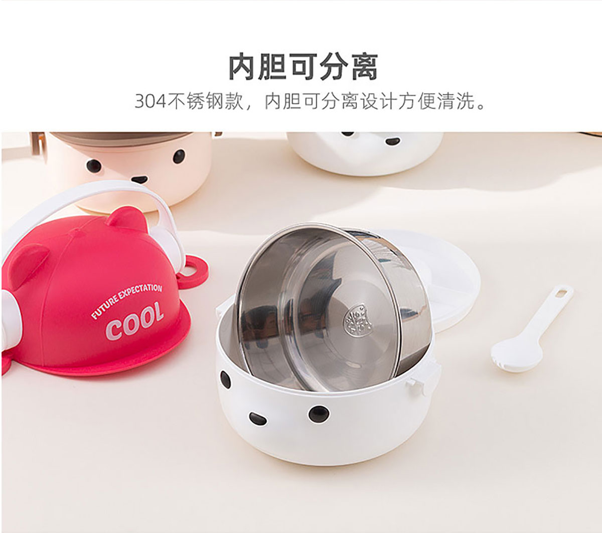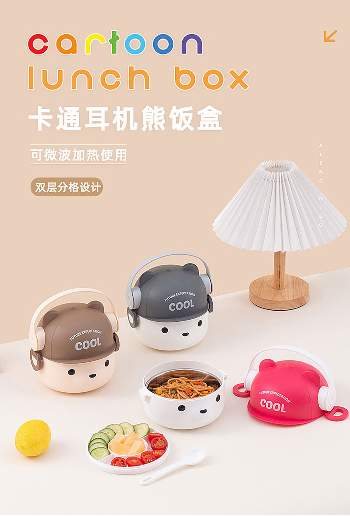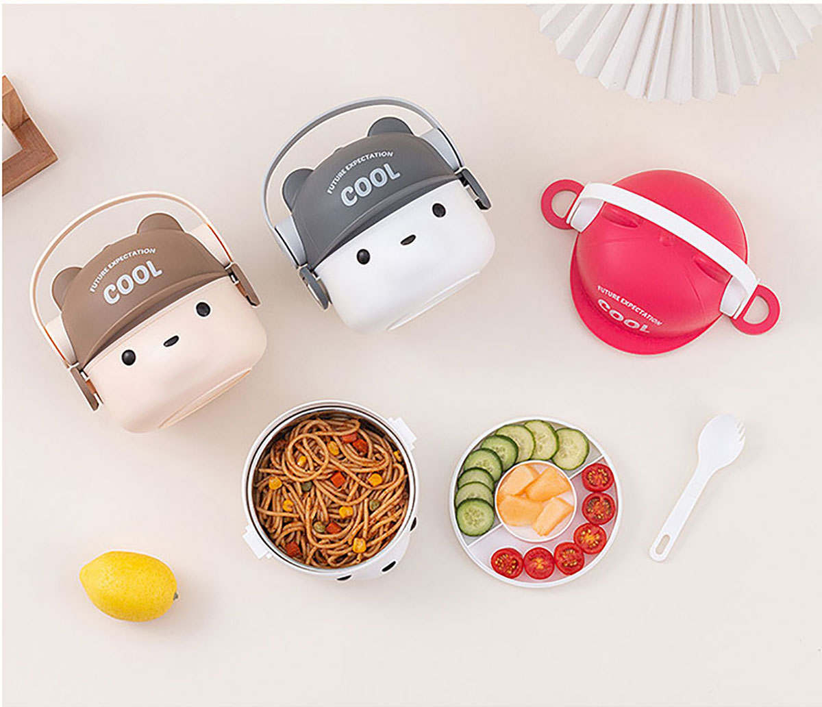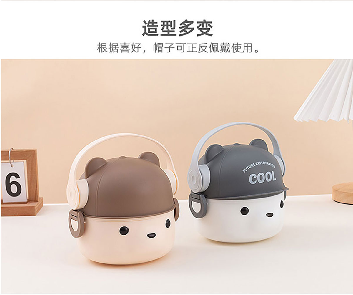 可愛帽子耳機熊飯盒/套裝飯盒 塑料款/不銹鋼款