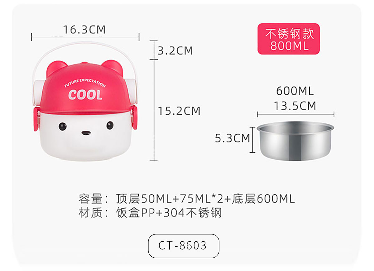 CT-8604(不銹鋼款套裝):160*155*150mm/1000ml 69*79mm/200ml