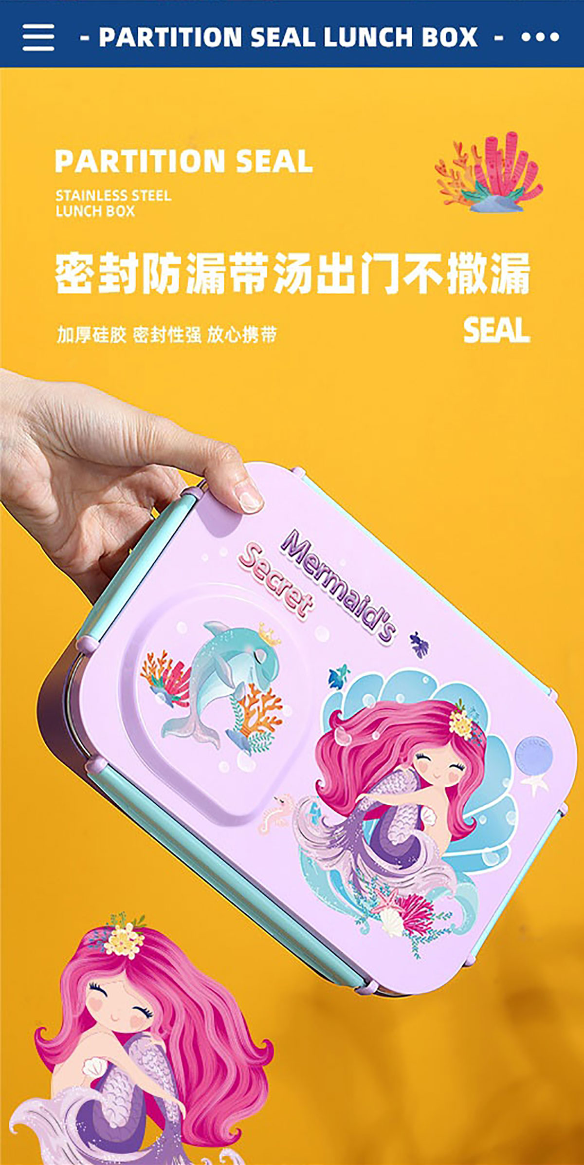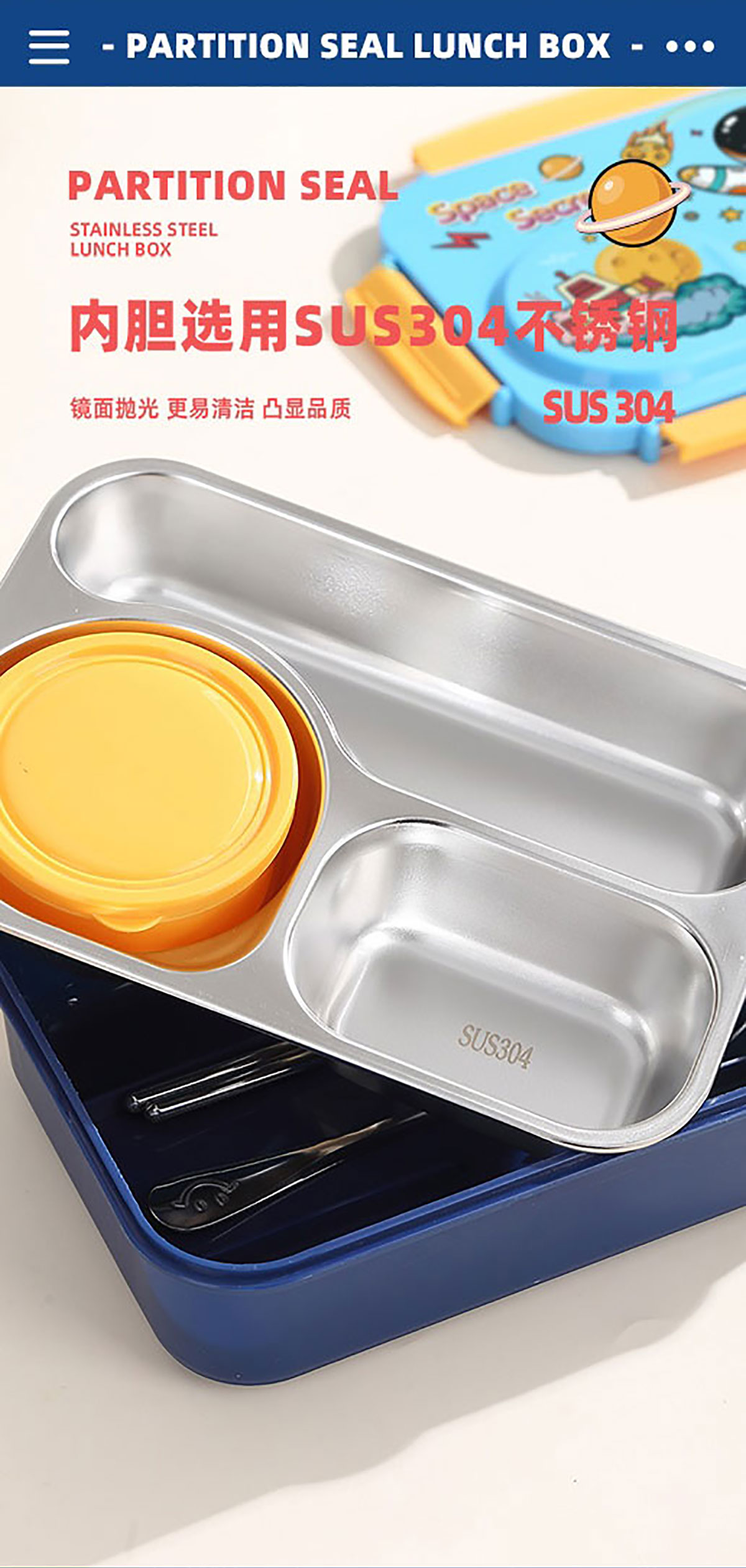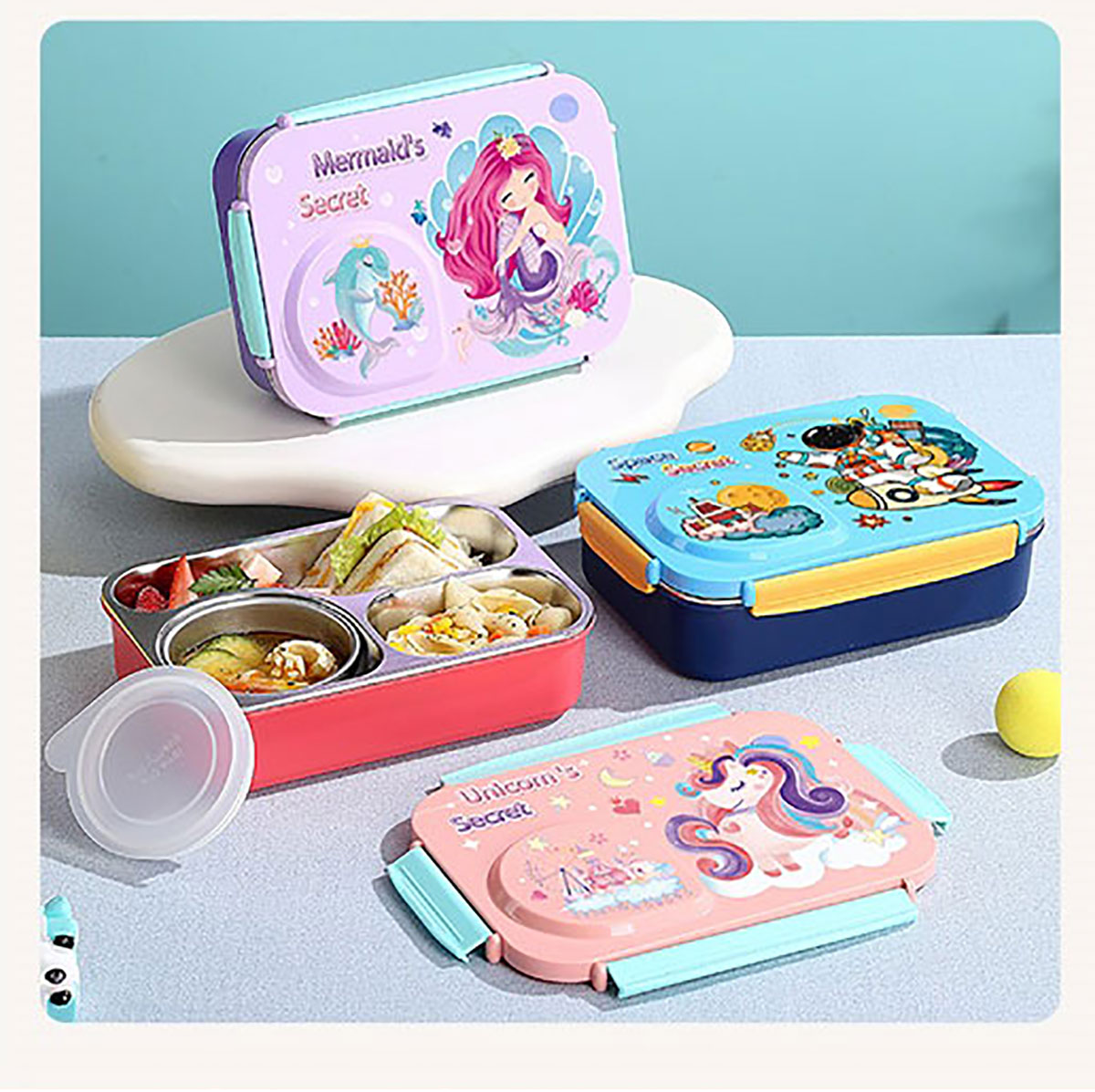 3D卡通不串味餐盒(不銹鋼3格750ml+塑料碗/不銹鋼碗150ml+不銹鋼勺筷)