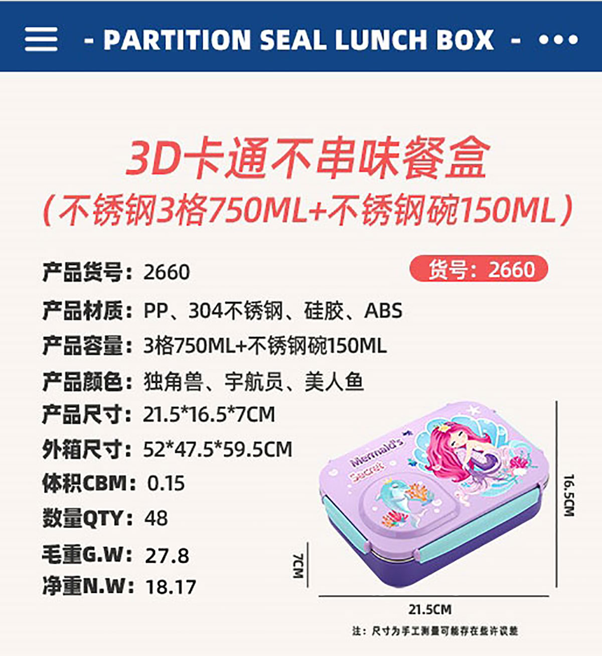 Size: AQX-2659:215*165*70mm+塑料碗150ml