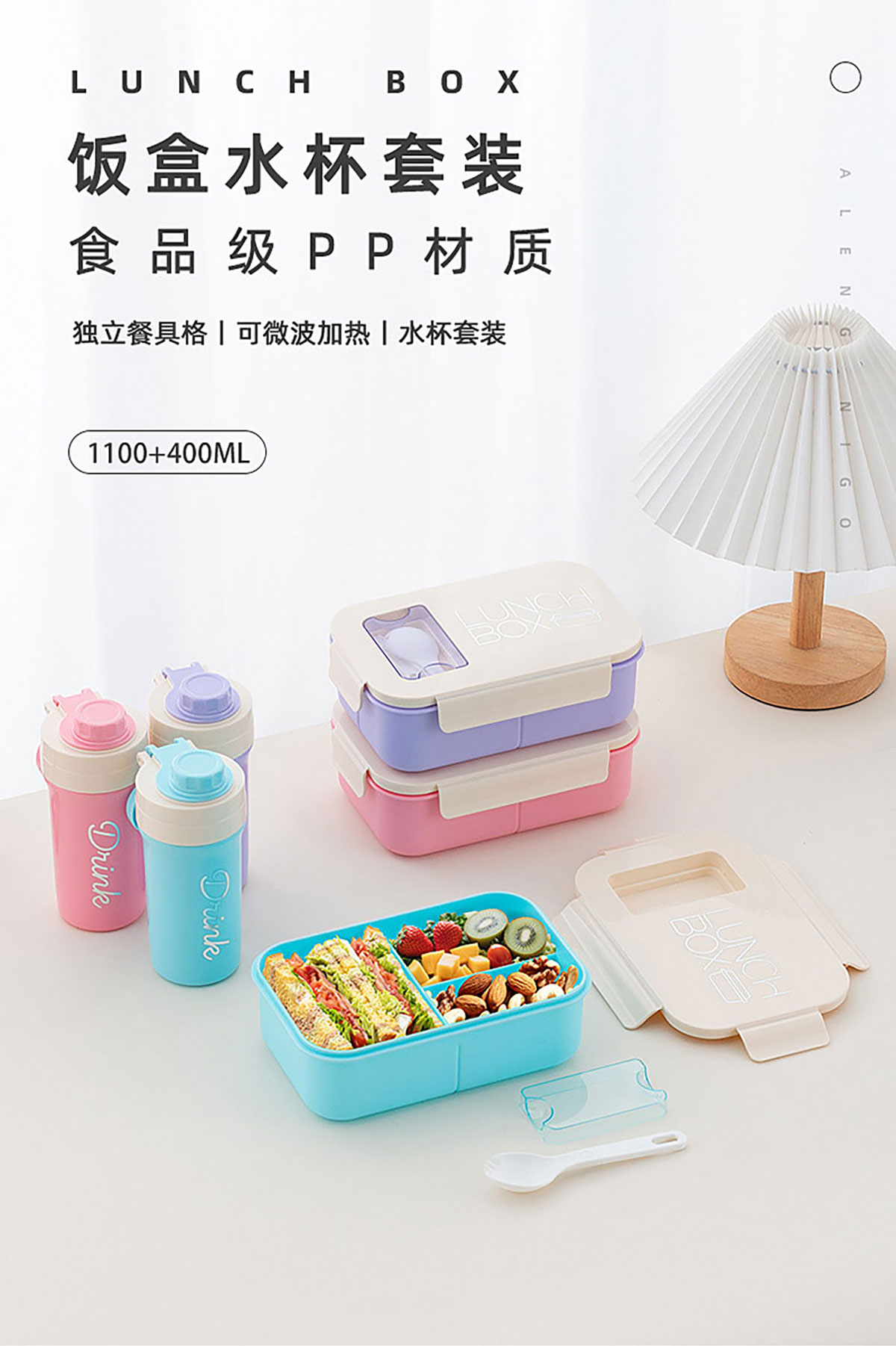 清新簡(jiǎn)約飯盒水壺套裝1100ml+400ml