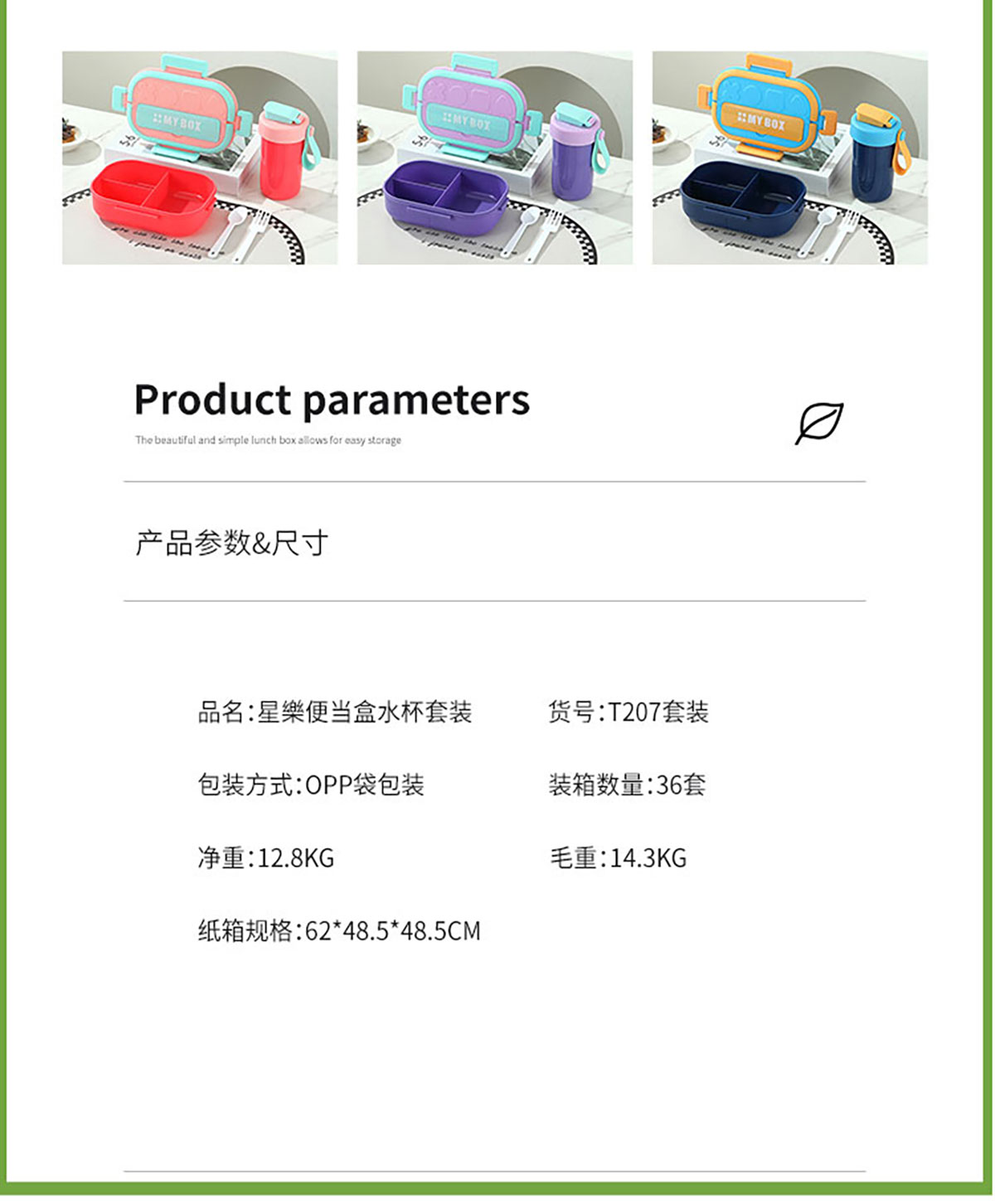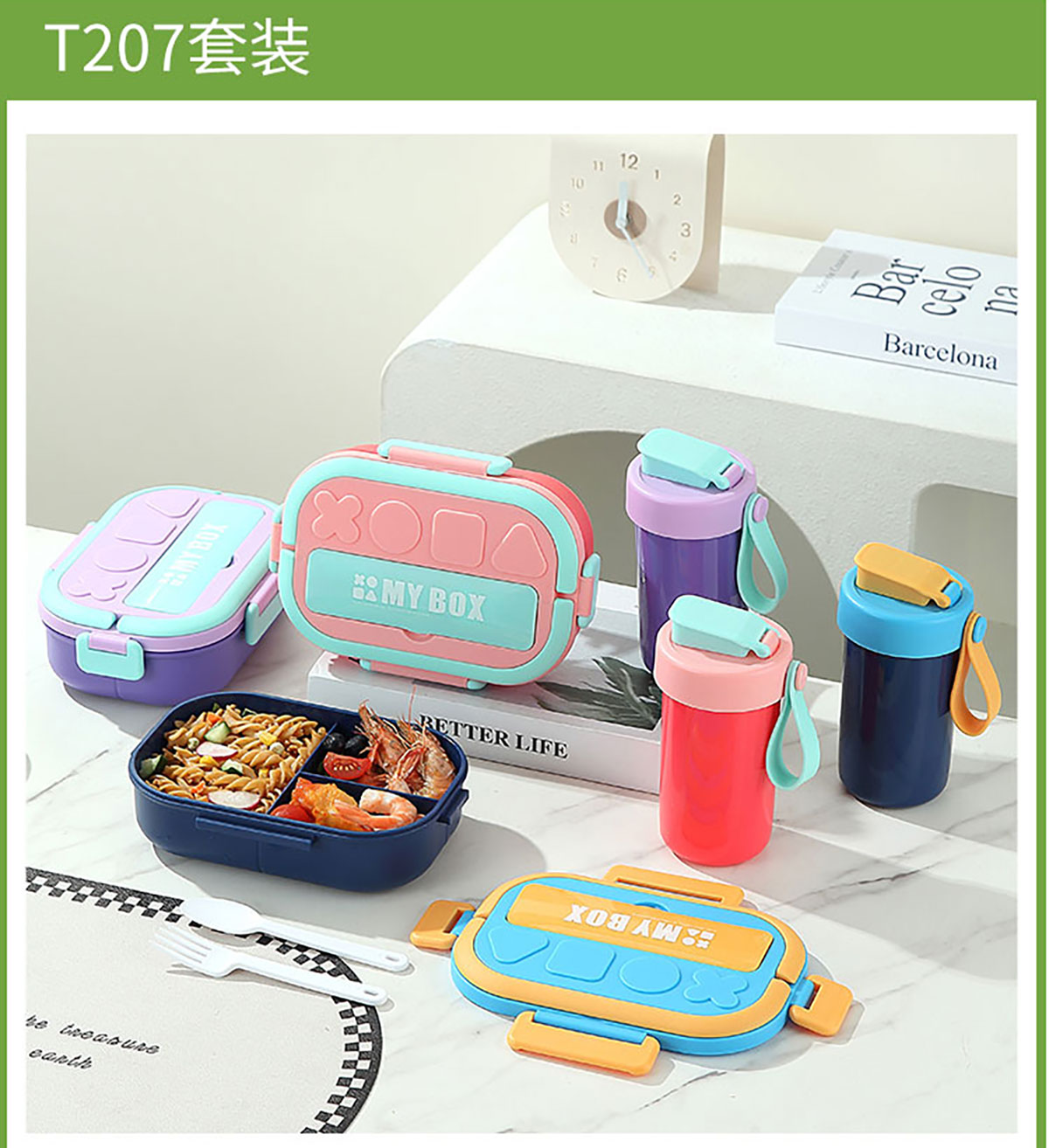 SWY-T207(套裝款):飯盒:215*149*71mm/1000ml 水壺:直徑82*高161mm/480ml