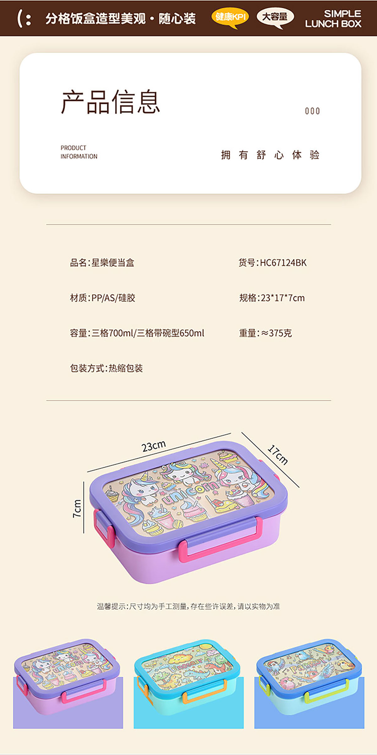 Size: 230*170*70mm(三格700ml/三格帶碗650ml)