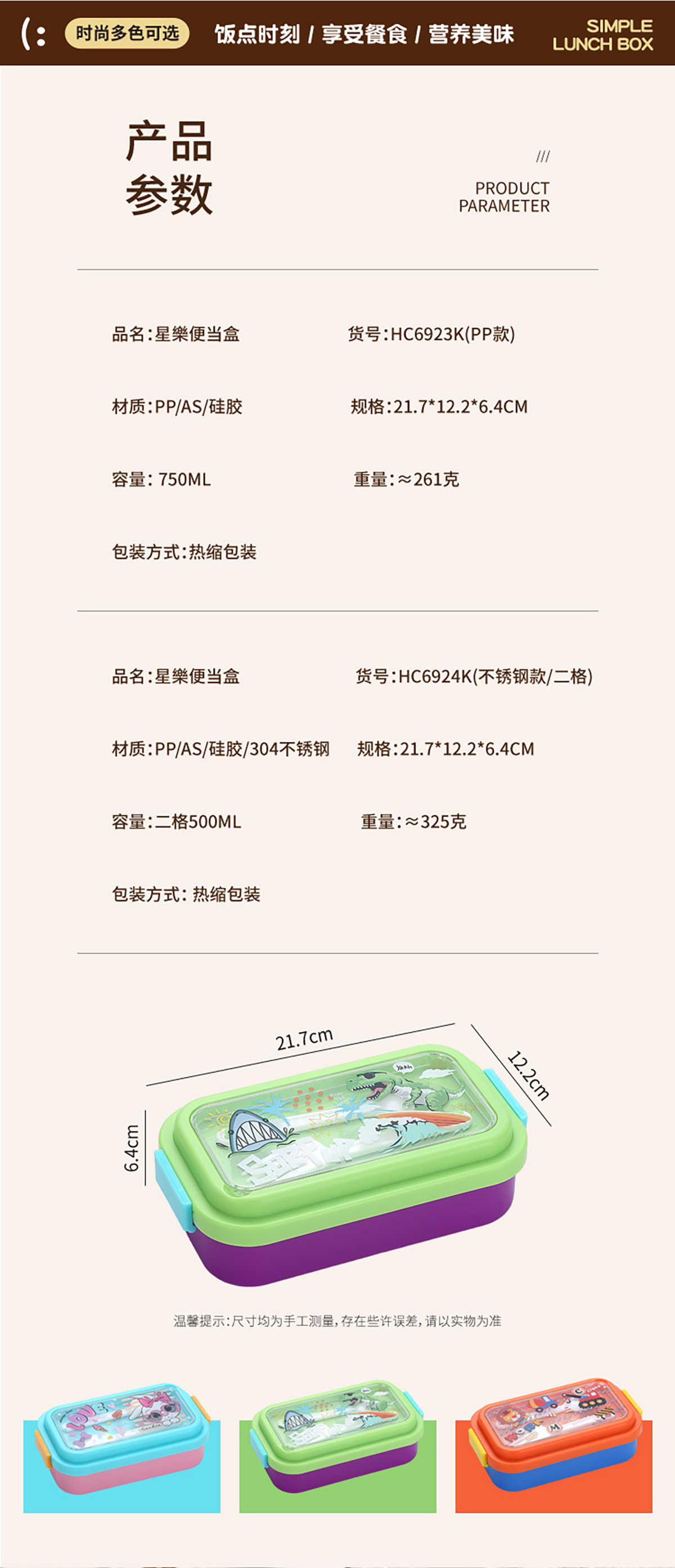 星樂卡通便當盒PP款750ml/不銹鋼款500ml