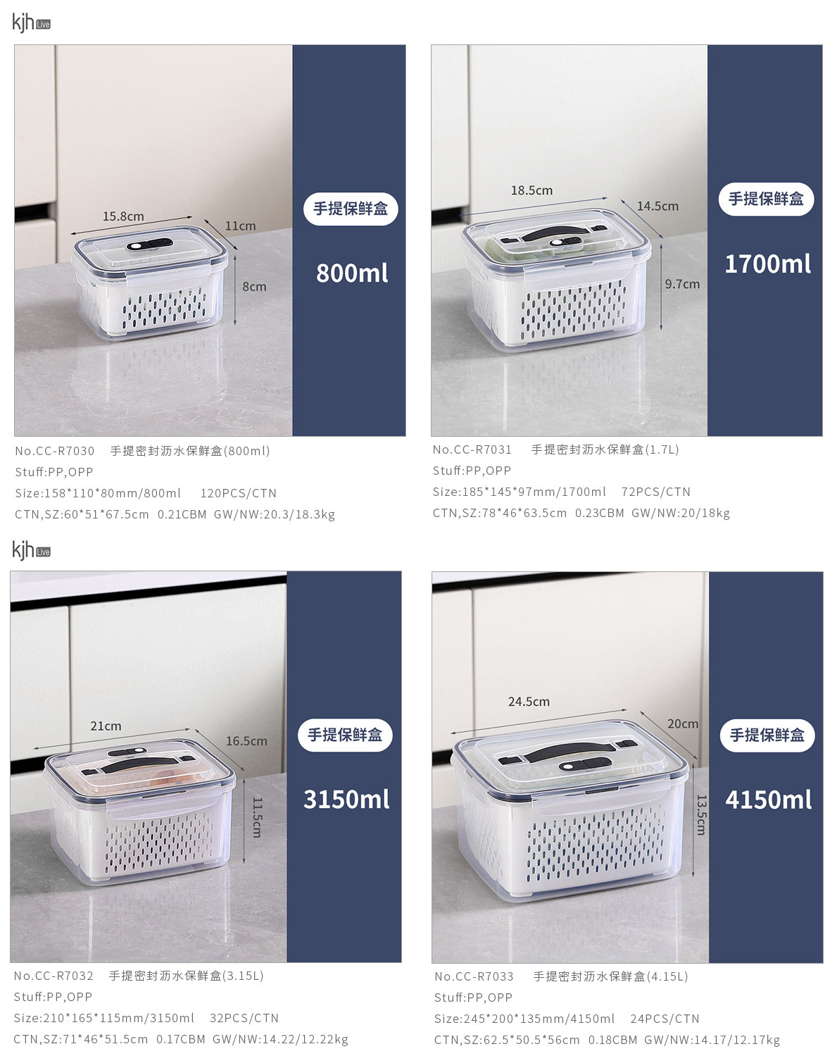 手提密封瀝水保鮮盒(800ml/1.7L/3.15L/4.15L/6.2L/9.4L)