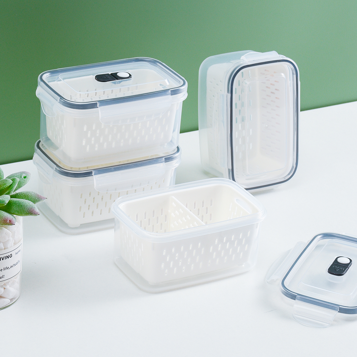 美時密封/透氣分格瀝水保鮮盒
