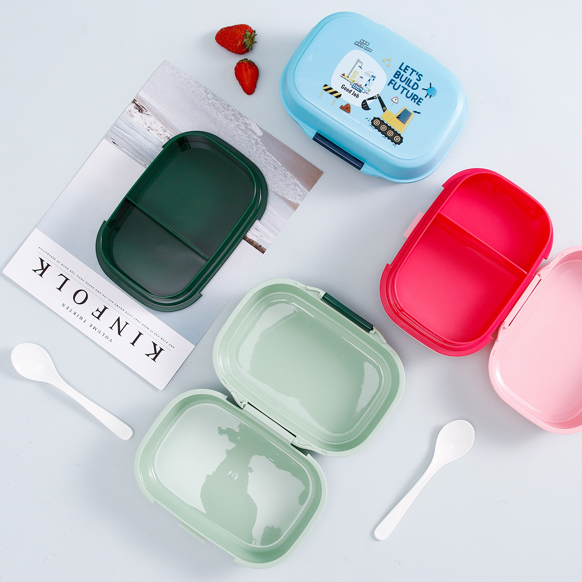 童彩翻蓋便當盒+運動水壺套裝(長方形/正方形1000ml+水杯350ml)