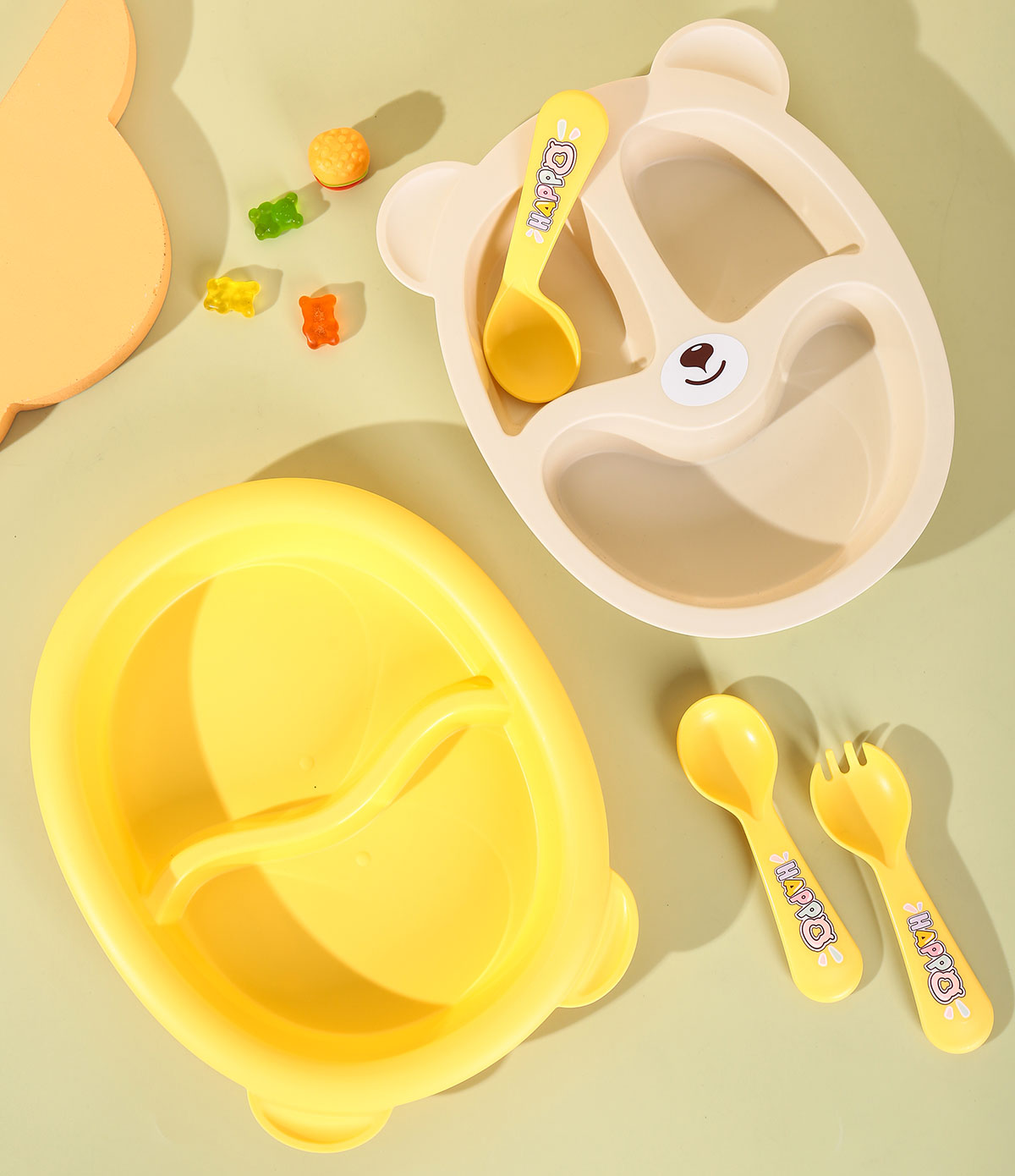 HH-XJ8330:餐盤245*200*45mm/碗160*110*80mm/杯140*80*83mm/勺叉125mm