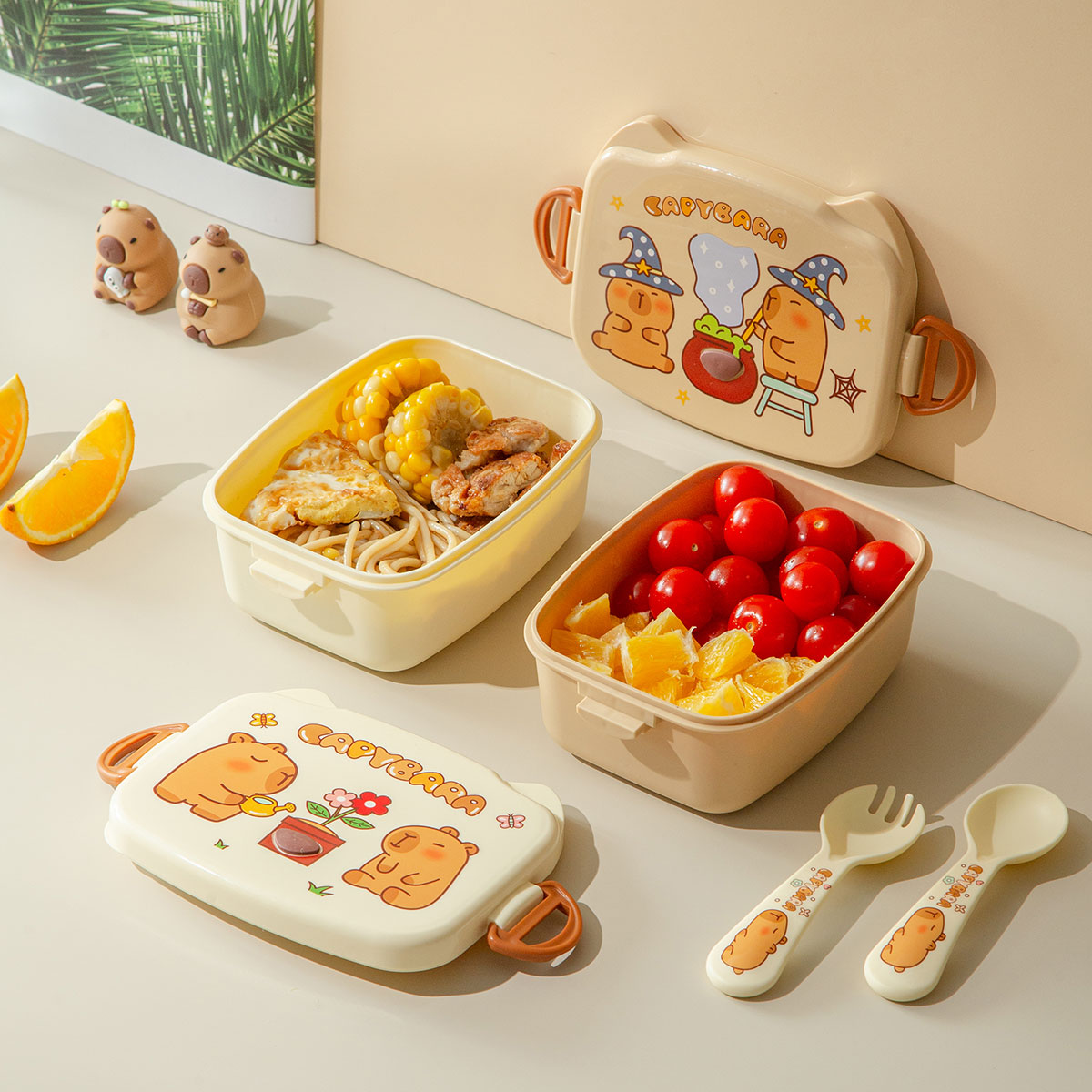 魔法豚長(cháng)方形/萌鏡豚/趣照豚分格便當盒