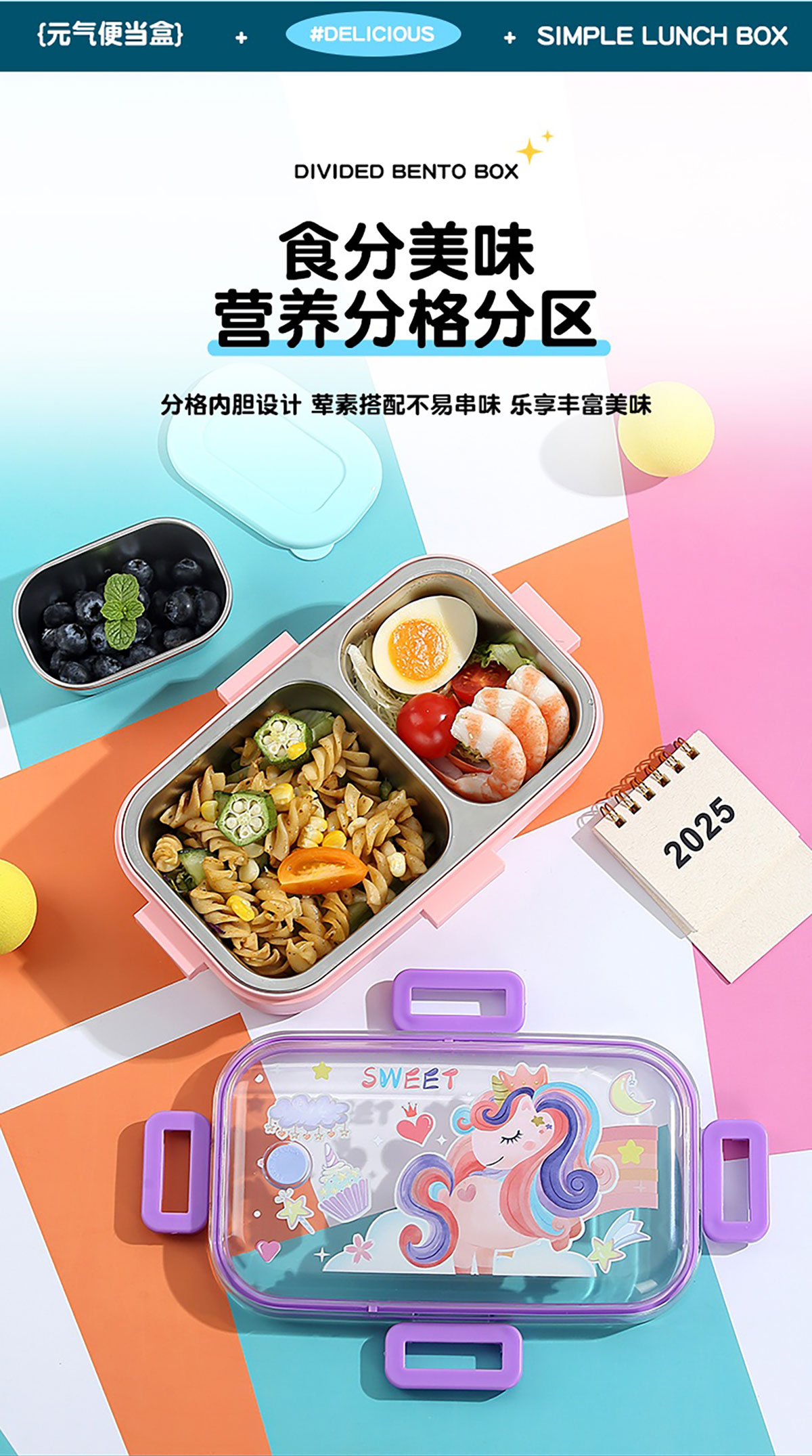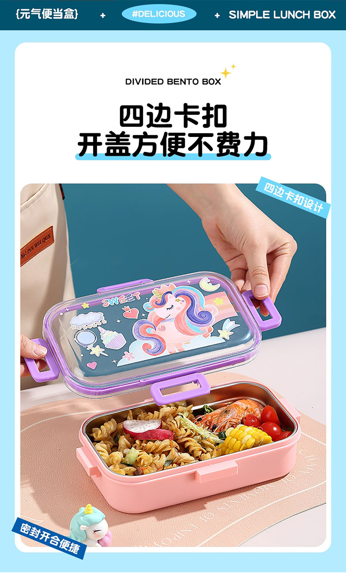 700ml童趣密封不銹鋼餐盒(單格+PP碗150ml/2格+沙拉碗80ml/2格+不銹鋼碗100ml)